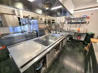 - die gut eingerichtete Gastroküche ist auf 80 bis 100 Gäste ausgerichtet und mit 4 Induktion- und 2 E-Keramikplatten ausgerüstet