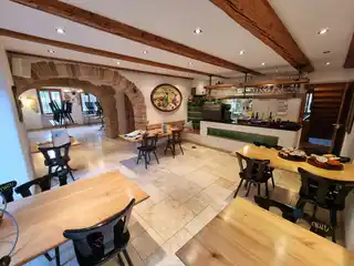 - Gastronomie, rustikale und heimelige Gaststube mit Platz für 45 Gäste von der Südseite ebenerdig und mit Rollstuhl zugängig (kann ohne grossen Aufwand in eine Wohnung umfunktioniert werden)