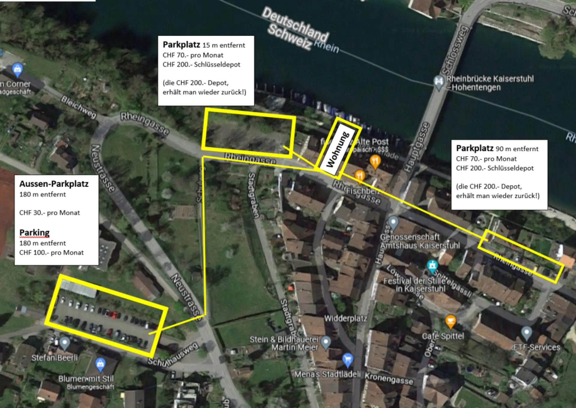 Der idyllische Ort Kaiserstuhl liegt direkt am Rhein. Das Städtchen ist verkehrsmässig sehr gut erschlossen.